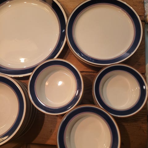 5 tallerkener med diameter 17 cm og 2 skåler med diameter 13 cm.