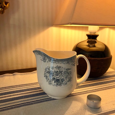 4 tallerkener er blanke og fine, mens den 5. er litt mer slitt. Begge skålene er litt mattere enn de blankeste delene. Ingen deler har nagg.