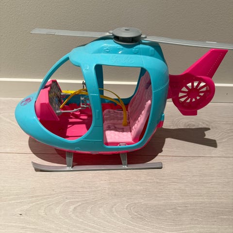 Selger et stort og dekorativt dukkehus i rosa og lilla farger. Huset har tre etasjer, flere rom med fine detaljer og en utvendig trapp på siden. Passer perfekt til lek med dukker eller som pynt på barnerommet.