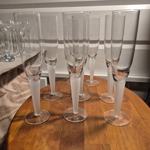 Eksklusive champagneglass fra Boda Nova Select-serien, designet av Liselotte Henriksen, høyde 22,5 cm, diameter 4,5 cm. Modellnummer 16723.