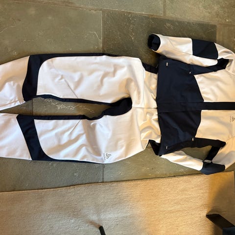 Vattert bukse (ski/tur) med lang glidelås i bena.
