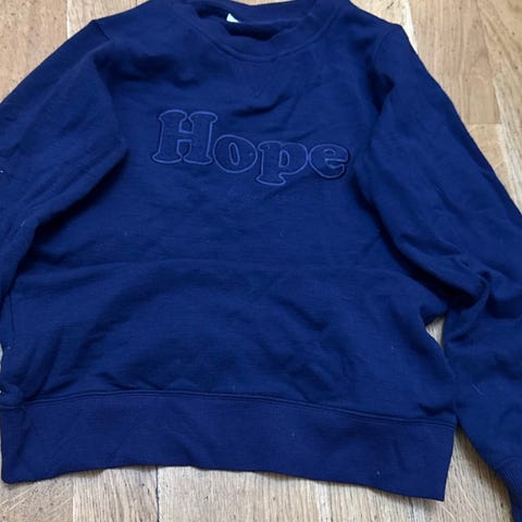 Pent brukt genser. Har et lite hull rett over merket på den ene armen, men elles veldig fin uten merker. Selges derfor ekstra rimelig.