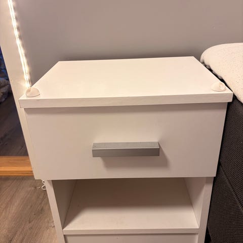 Praktisk og kompakt liten nattbord. Passer perfekt ved siden av seng eller sofa. Stabil konstrksjon og tar lite plass. Klar til bruk.