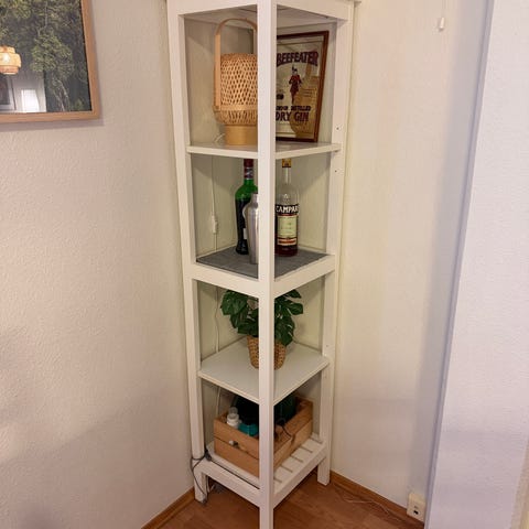 Selger en Vittsjö hylle fra IKEA i brunsvart/glass. Normal bruksslitasje, men fungerer godt. Den er litt vinglete hvis man rister i den, men står ellers stødig og mangler trolig bare en skrue eller noe ettersom vi har flyttet/demontert og montert den igjen tidligere. Har uansett masse bruk igjen 😊