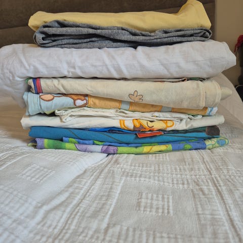 Selger samlet 9 par sengesett for barn, passer for pute 40 x 60 cm, og dyne 100 x 140 cm. Pent brukte - vi hadde mange, så derfor er de ikke mye brukt.
