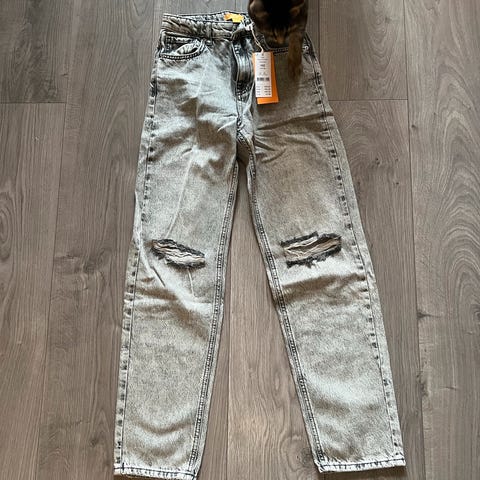 Superkule jeans i en fin vask fra Gina Tricot. Hullene på knærne har blitt større enn de skulle være (se de to siste bildene) selges derfor billig. Annet enn det er de i god stand.