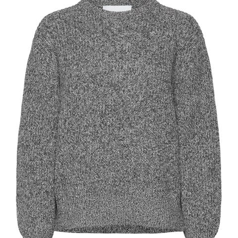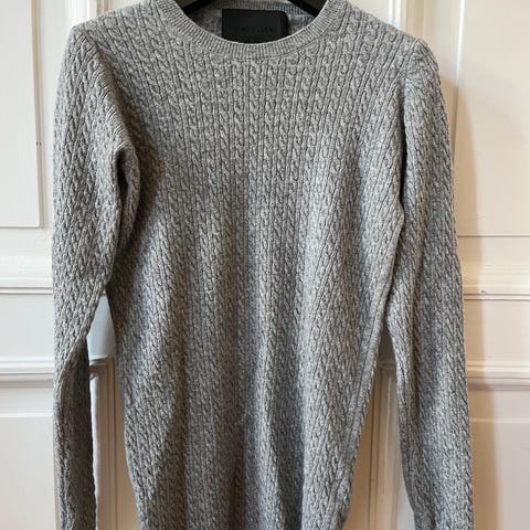 Nydelig, grov strikk med vide ermer og en avrundet fasong. Noe lengre bak. Fin å bruke oversized!