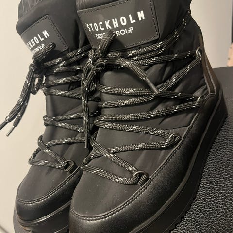 Trendy vinterboots fra Stockholm Design Group. Brukt et fåtalls ganger i fjor da de desverre er for små. Link: https://www.eurosko.com/no/dame/vintersko-vinterstovler/boots/stockholm-design-group-1193_414208-54147060