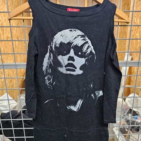 Features a rhinestone cross detail on the chest — subtle, dark and devotional in all the right ways.