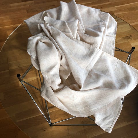 Vakker blå duk i 60 % lin og 40 % bomull. Nyvasket og strøket, ingen flekker eller skader. Kan brukes på begge sider, se bilder. Kan sende med ønsket fraktselskap fra kjøper.