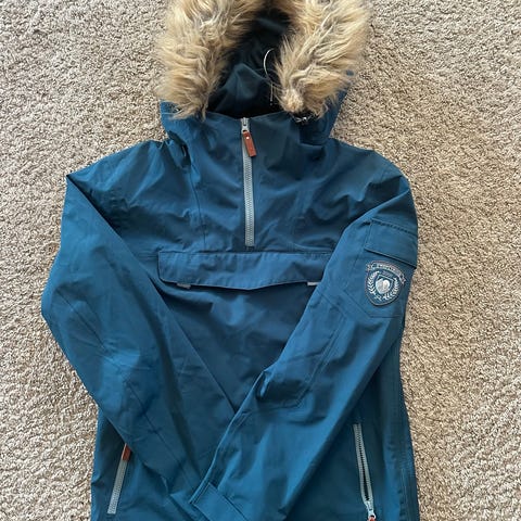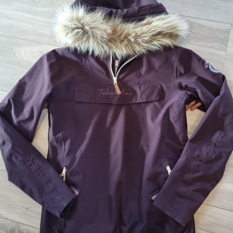 Lange glidelåser ned på hver side for enklere på-avkledning og mulighet for lufting om man er varm. Meget pent brukt, selges fordi den er blitt for liten.