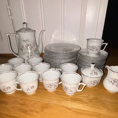 Veldig pent kaffeservise fra Bavaria. Kaffekanne, 5 kopper, skåler og asjetter. Ingen skade eller slitasje.