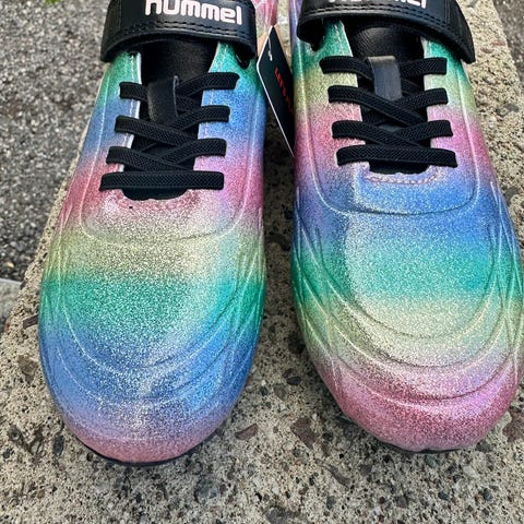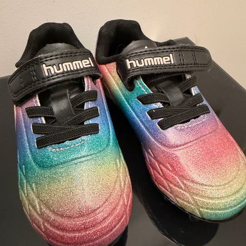 Hummel fotballsko i blå farge, størrelse 35, designet for barn. Skoene har gummisåle med knotter for bedre grep på underlaget. Overmaterialet er syntetisk, og innsiden har en avtagbar innersåle for komfort.