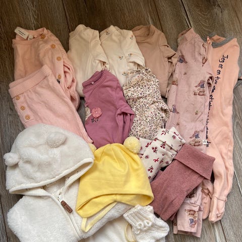 1 sett beige body/bukse str 62/68 (cubus)