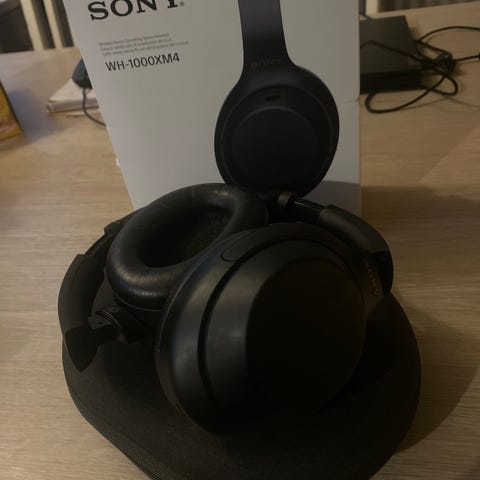 Strøkne Sony WH-1000XM5 hodetelefoner i mørk blå farge. Over-ear design med myke øreputer for komfort. Trådløs tilkobling med aktiv støydemping.