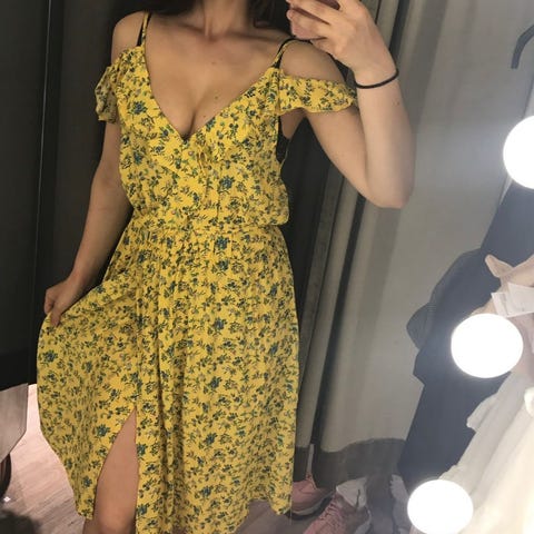 NA-KD sommerkjole med blomstermønster. Kjolen har blitt sydd inn i livet og glidelåsen har blitt flyttet på. Sømmen matcher ikke helt i livet som man ser på bildet. Str S/M. Var str. 44.