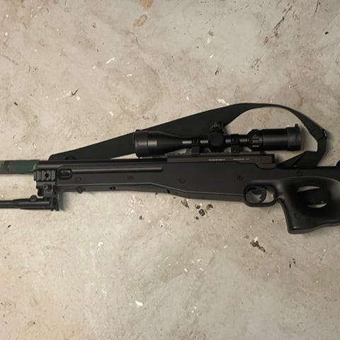 Hei selger min SSG24 Airsoft sniper med M220 fjør som skal gi 5 Joule/700 FPS, selges med 2 magasin kikertsikte med 10X zoom og ei flaske med 0.49 kuler som passer denne rifla bra. Farget med kamuflasje men tofot er ødelagt kan demonteres før salg, og sikringen er knekt men funker ellers akkurat som den skal.