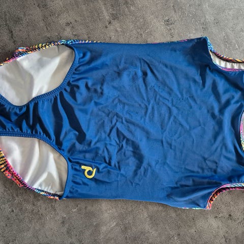 Zone turndrakt fra Doda dansebutikken. Brukt av jente fra 8-10 år. Sølvpynten løsnet litt.