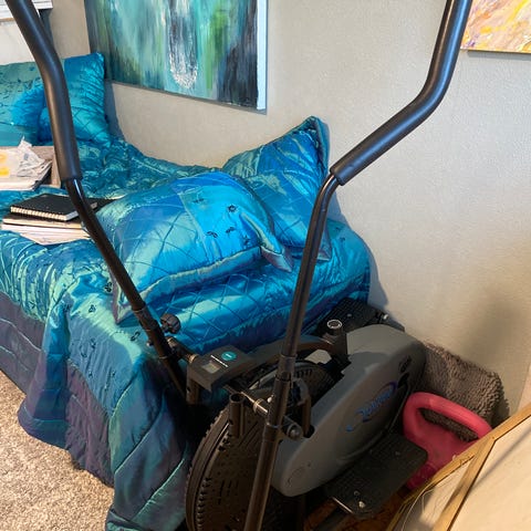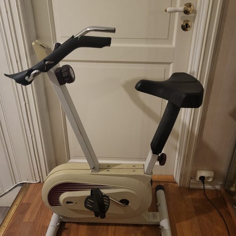 Pro form ellipsemaskin med digitalt display som viser treningsdata. Utstyrt med håndpulsmåler og justerbar motstand. Maskinen har solide fotplater og et rammeverk i metall, egnet for hjemmetrening. Nylig kjøpt denne på finn, selges videre da jeg kom i fare for å kjøpe to.