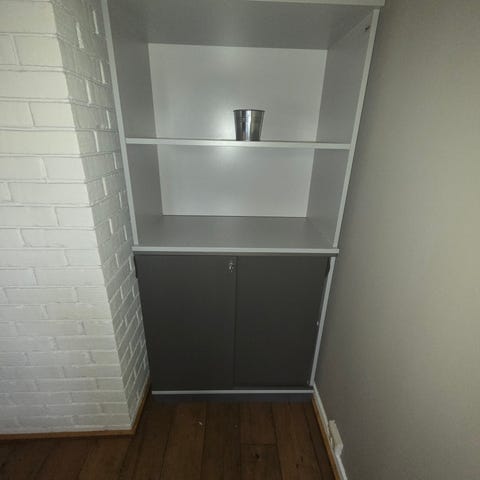 Skrivebord, kommoder, skap, hyller og lampe gis bort.