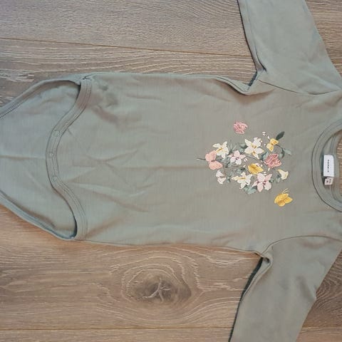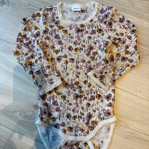 2 stykker Name it ull body for jente i størrelse 98. Bodyen er laget av ull og har fargen rosa med mønster.