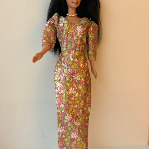 Selger to dukker, Barbie og Ken med trillekoffert og litt reise effekter samt gitar, caps, sko, veske etc