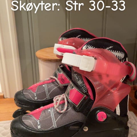 Barneskøyter i størrelse 30 til 33 med blå og hvit farge. Skøytene har stropper og kan justere størrelsen 30 -33 slik at barnet kan vokse med skøytene. Fortsatt mye skøyteglede igjen:) bør muligens slipes