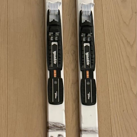 Skiene er er så godt som ubrukt, men har noe rust på stålkantene som lett kan pusses vekk.