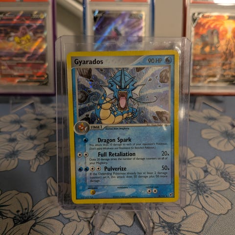 Selger en shining gyarados. Et av, hvis ikke top kortet fra neo revelations. Og første shining kortet som kom på markedet, sammen med magikarp. Kortet er ikke strøkent, er brukt men i god stand. Må hentes i Sandefjord, kan eventuelt kjøre litt for å møtes et sted