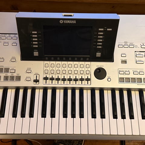 Korg PA900 keyboard med 61 tangenter og innebygde høyttalere. Instrumentet har en stor skjerm for enkel navigering og flere kontrollknapper for lyd- og effektinnstillinger. Keyboardet viser tegn på bruk med en sprekk i plastkanten på siden. Den fungerer fint uten noen problemer, ble knust på ene siden grunnet flyttingen. Kom gjerne å prøv den.