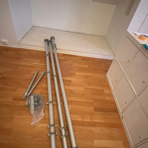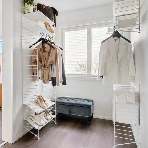 Garderobe med metallkurver og kleshengerstang