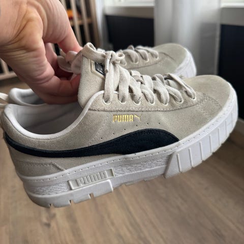 Puma Sneakers joggesko i størrelse 38. Skoene har en kombinasjon av materialer og er designet for hverdagsbruk. De har snøring og en solid såle som gir støtte og komfort.