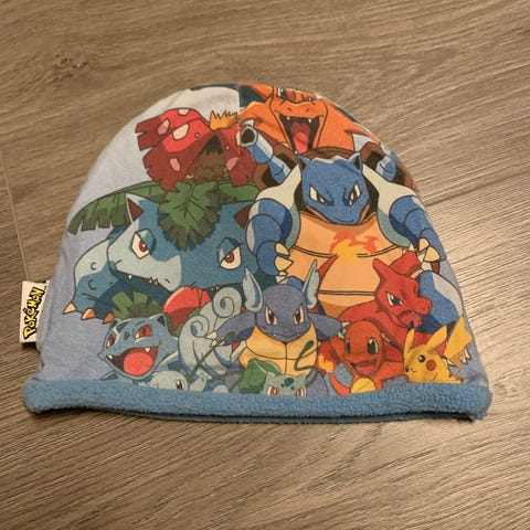 Blå, to lag fleece med Pokemon emblem på.