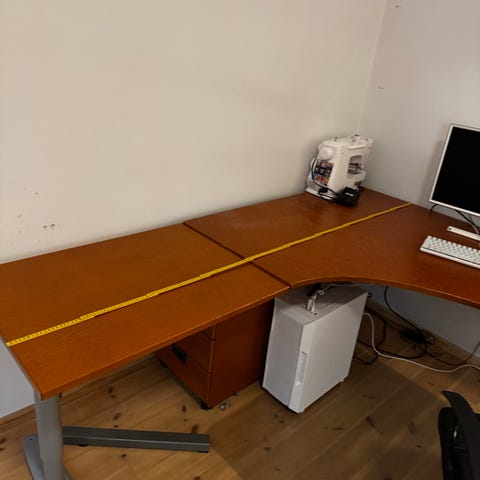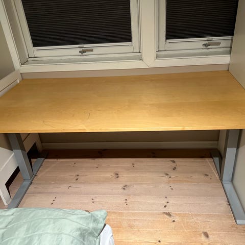 Selger skrivebord med hev senk billig grunnet flytting. Er festet lyslenke bak og signal på overflaten av skrivebordet. Finner ikke kontrollen, så lyslenken fungerer ikke. Selges dermed billig mot henting.