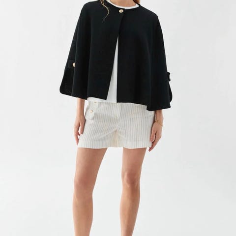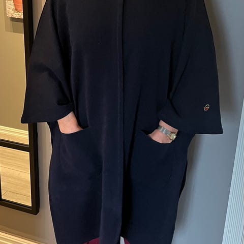 Selger min flotte og nesten ubrukte cape fra Busnel, en hybrid mellom strikket cardigan og poncho. Den har et klassisk rutemønster i camel/blågrått ( salty caramel/ antrasitt) og capen er i 100% ull. Busnel har alltid klassiske og sofistikerte modeller, og Gertrude-cape med gullknapper i dobbel knappelukking er intet unntak. Capen passer fra str. XS til M, og kan anvendes både inne og ute. Kvittering medfølger ;)