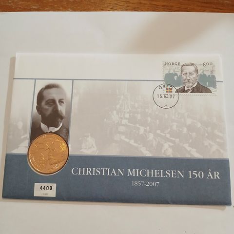 Alexander Kielland Minnemynt med motiv av forfatteren Alexander Kielland, i myntbrev.