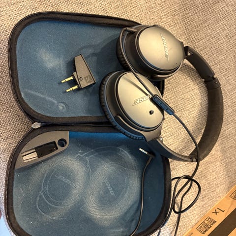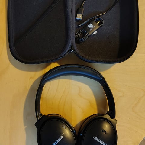 Selger trådløse Bose Quietcomfort 45, pent og lite brukt. Fantastisk bra lyd og bass, lyden kan stilles via BOSE appen. Leveres med hardt etui for oppbevaring og beskyttelse. + aux kabel og lader