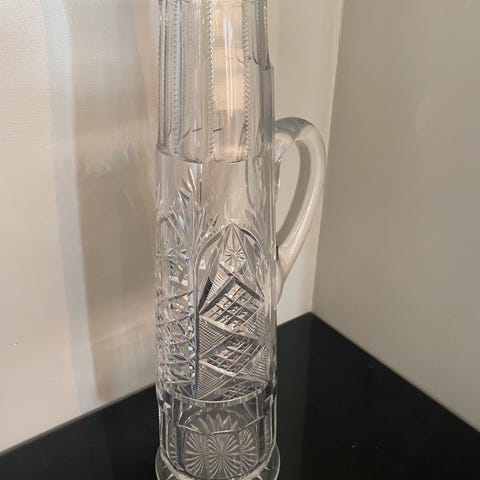 Glassene har en innsvinget form med vertikale fasett-sliping på nedre del av glasset.