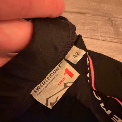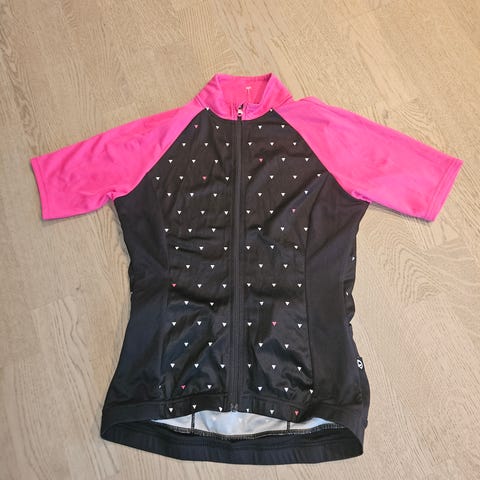 Pent brukt sort og grå sykkeltrøye med korte ermer. Str. M - liten i str. 3 lommer nede/bak. Ingen hull eller rifter.