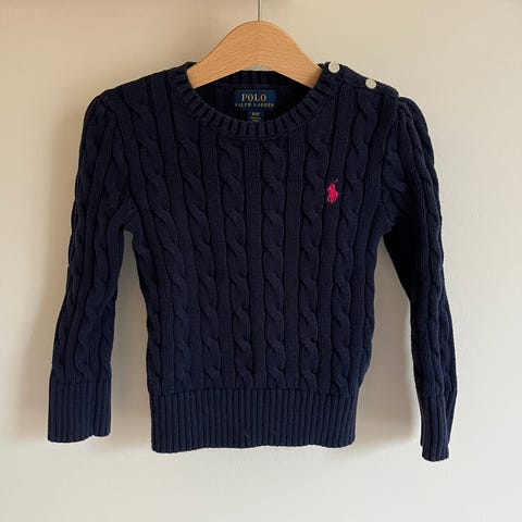 Klassisk, original RL rød flette- jakke; kjøpt ny i 2025 og knapt brukt (og kun til pent, av ett barn). Ingen skader/ merker/ hull, ikke navnet.