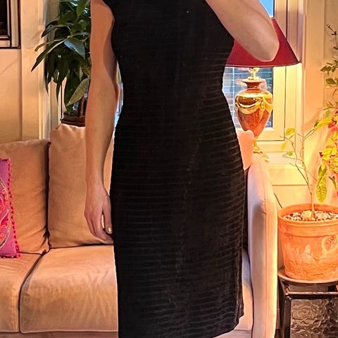 J. Lindeberg Doris Stretch Dress er en kjole i marineblå farge, laget av ullmateriale. Kjolen er i størrelse 34 og har en stretchkvalitet som gir komfort og fleksibilitet. Den er designet for kvinner og har en enkel, tettsittende passform uten ermer.