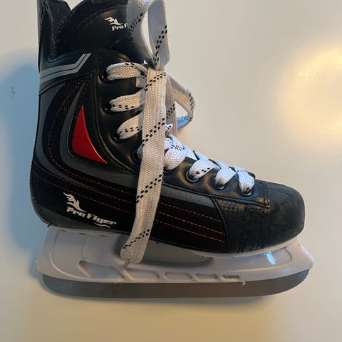 Pro/ Ranger ishockeyskøyter for barn i størrelse 33. Skøytene har svart og hvit farge med snøring og foret innside for komfort.