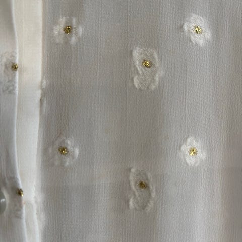 Blusen har en fin knytedetalj på brystet.