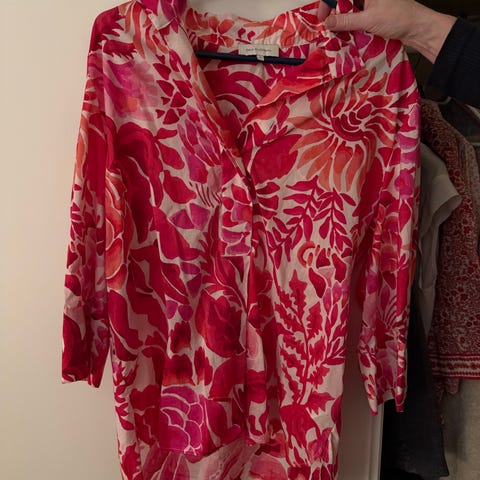 Jeg selger min Munthe Dutton bluse i størrelse L. Blusen er flerfarget og laget av silke. Den har et mønstret design og langermet modell.