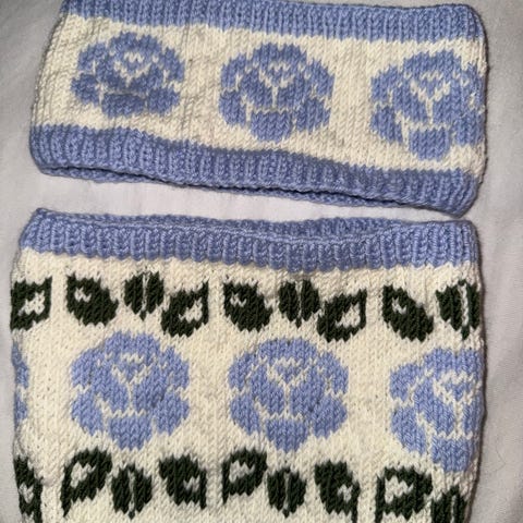 Hjemmestrikket pannebånd og hals til voksen