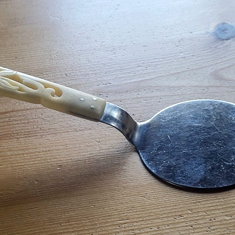 Aanonsen, fiskespade, stekespade, rustfritt stål, stainless steel, kjøkkenredskap, kjøkkenutstyr, fisk, matlaging, retro, vintage, 1970, 1980, 70-tall, 80-tall, Norge, Norway, norsk design, oppvaskmaskin, servering, praktisk, funksjonell, skandinavisk, kjøkken