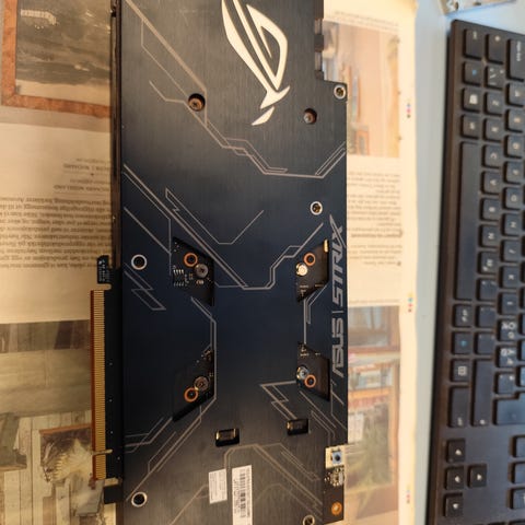 Selger grafikkortet mitt etter bruk siden 2019. Følger med stock cooler, men anbefaler på det sterkeste å sette dette inn i en vannkjølingsloop, da luftcooleren er svak og fører til høye temperaturer. Dessuten er det noe taperester på bakplate for luftkjøler. Vannkjøleren (corsair xg7 rgb) fremstår i grei stand, noe blikket klar plastikk over flere år. Kun kjørt med EK premix uten fargetilsetninger. Byttet væske årlig, temperaturer rundt 60C under heavy load om jeg husker rett (360mm rad+CPU i loop)