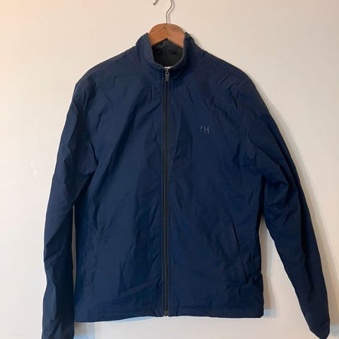 Mørk blå jakke i resirkulert ull 2 som passer perfekt senhøsten og vinter.. Jakken er pent brukt. Den har fòr og har glidelås innenfor knappene om det er kaldt. Glidelåsen kan tas enkelt av om man foretrekker det. Gode lommer på begge sider foran. Nypris 1800kr.
