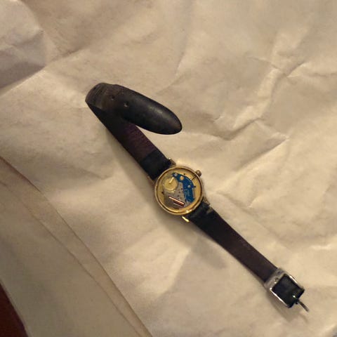 Ene halvdelen av klokkereimen er ødelagt og må enten erstattes eller kjøpes av noen med veldig smale håndledd.