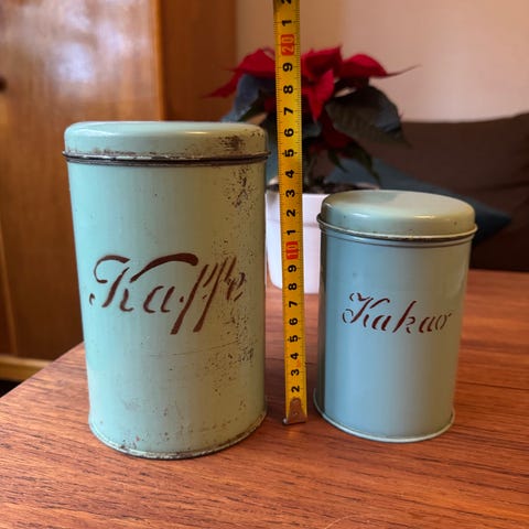 Denne vintage metallboksen er et nostalgisk samleobjekt som minner om en tid da kaffe ble vakuumpakket for å bevare kvaliteten.